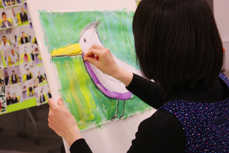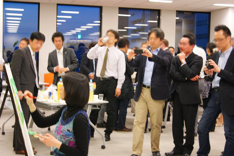 その前に、グランフロントへのオフィス移転パーティーがあり、皆さんへの紹介も兼ねてライブペイントをさせていただきました。