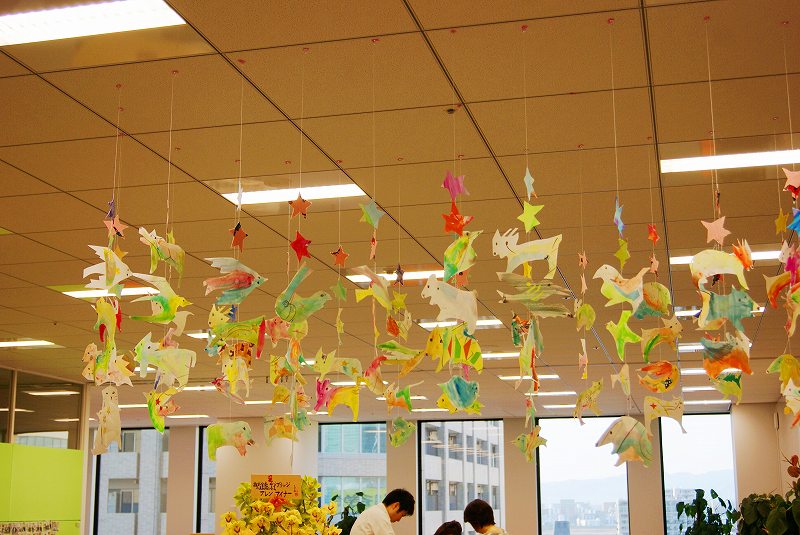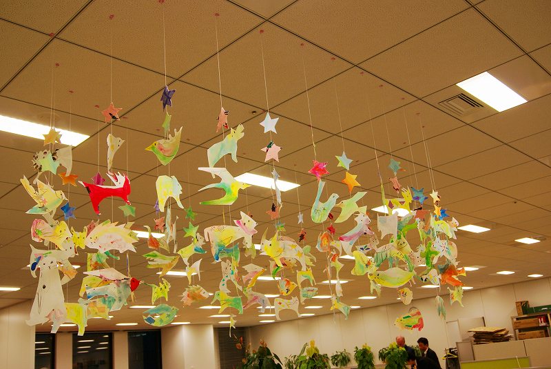 オフィスの入口には、モビールをちょっとリニューアルさせて、飾りました。