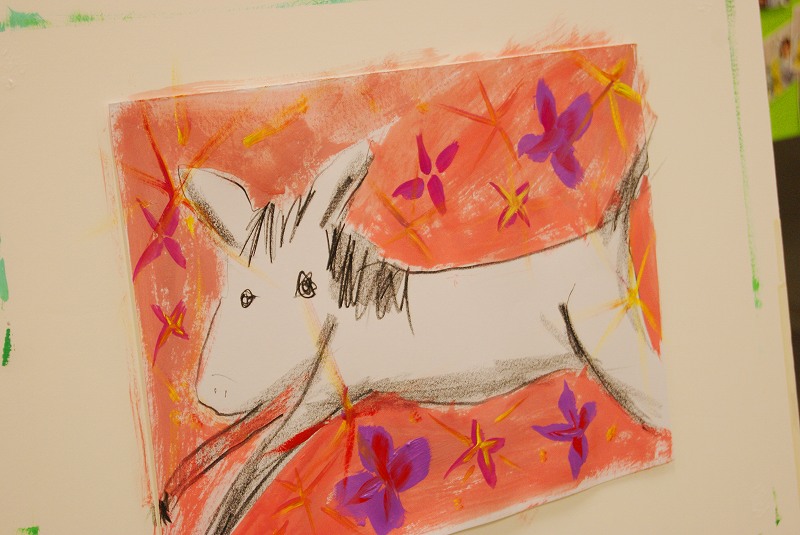 この日は3枚の絵を描き、1枚は、退職される方へのプレゼントということで、その方からのインスピレーションで描きました。(馬の絵です)
