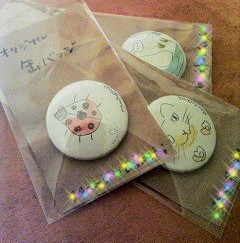 それから缶バッチを、何かの荷物の緩衝材として入ってた茶色の紙を台紙にして袋に入れて、手描きで「オリジナル缶バッチ」って描いたら、すんごく手作り感溢れていい味出してくれました…!