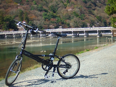 折り畳み自転車を持って電車で京都駅へ行き、駅で自転車を組み立て、五条通りを通って桂川へ。