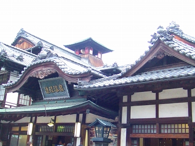 松山駅からまた自転車に乗って道後温泉へ行きました。