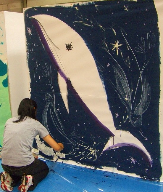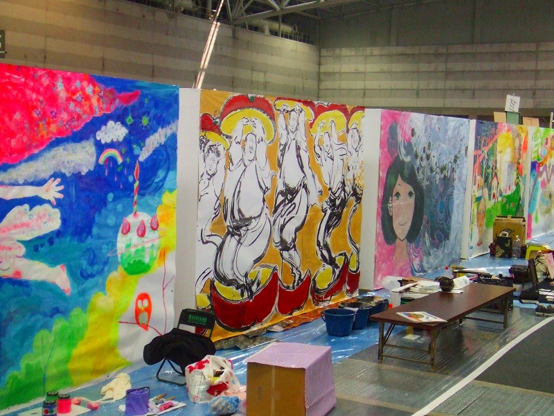 今回お隣のブースのyuさんは、毎回ライブペインティングをされているというベテラン!話を聞くと、「ライブペインティングは経験」だそうです…だから1日目より2日目のほうがよかったり、ということもあるらしい。