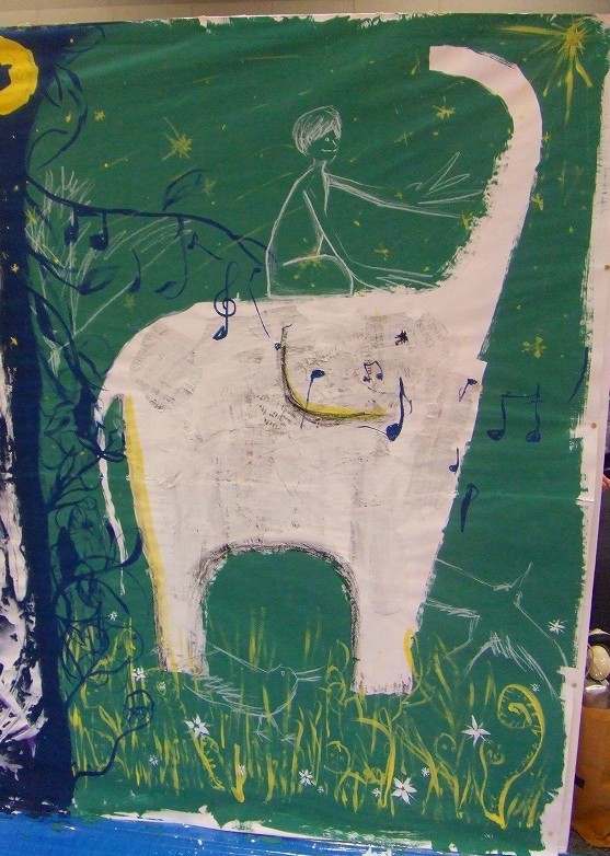 今度は線画を描かず、バックの色だけでぞうを描きました。