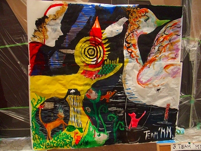 今回は同じアートスクールの先輩、oshさんとIPさんと、3人で"TEAM「MM」"を結成し、ライブペインティングです!!!