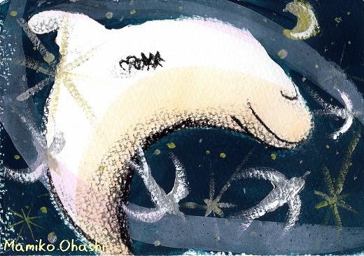 自分で作ったあるお話を元に描いた絵ですが、この絵にお話をつけるかどうかはまだ考え中・・・