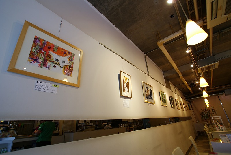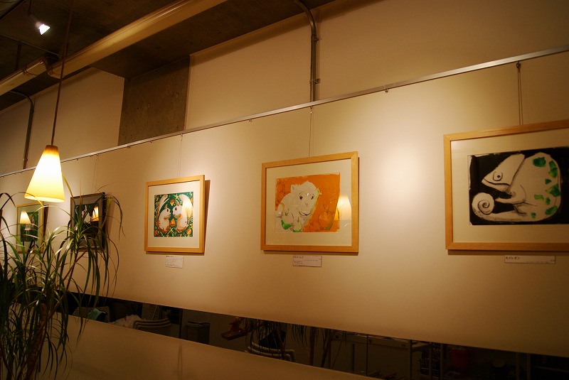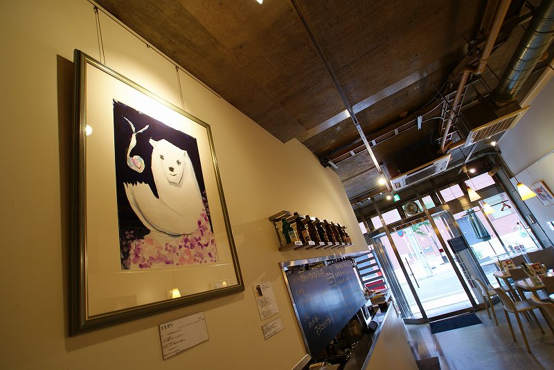 それからメニュー看板の横には、私の作品の中で一番大きな絵、「ともだち」を展示しています。