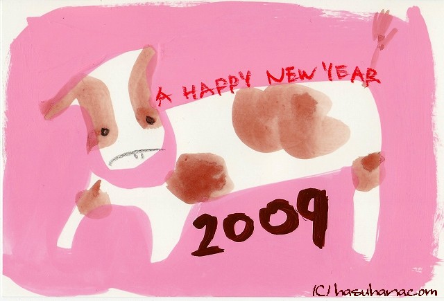 上のイラストは、今年の年賀状に使ったものです。