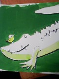 ↑「誰でもできる尻尾スクリュー法」を執筆したワニーノ・クロコーダ先生と「ベロ出し選手権」ケニア代表のクービロング・ジラフ氏。