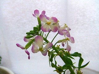 大根の花って、白だと思っていたんですが、花びらの先がほんのりピンクなんですね。