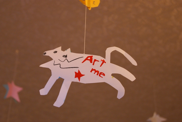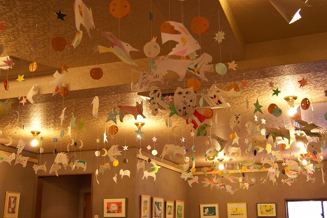 今回は、ギャラリーの天井にモビールをたくさん吊るしました。